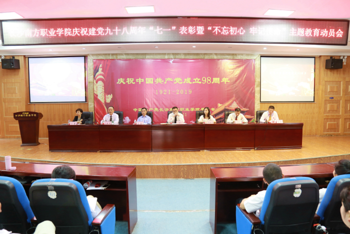 6月11日下午,學院慶祝建黨98周年七一表彰暨暨“不忘初心 牢記使命”主題教育動員大會在學術(shù)報告廳隆重召開。學院黨委書記任曉晴、黨委副書記、董事長肖曉春、中公教育集團領導王金、紀委書記、副院長吳濤、黨委委員、副院長肖建偉、副院長秦傳松,財務總監(jiān)王赟出席大會。學院各系部、處室負責人、全體教職員工黨員、教師代表、學生黨員代表共340余人參加。大會由學院紀委書記、副院長吳濤主持。