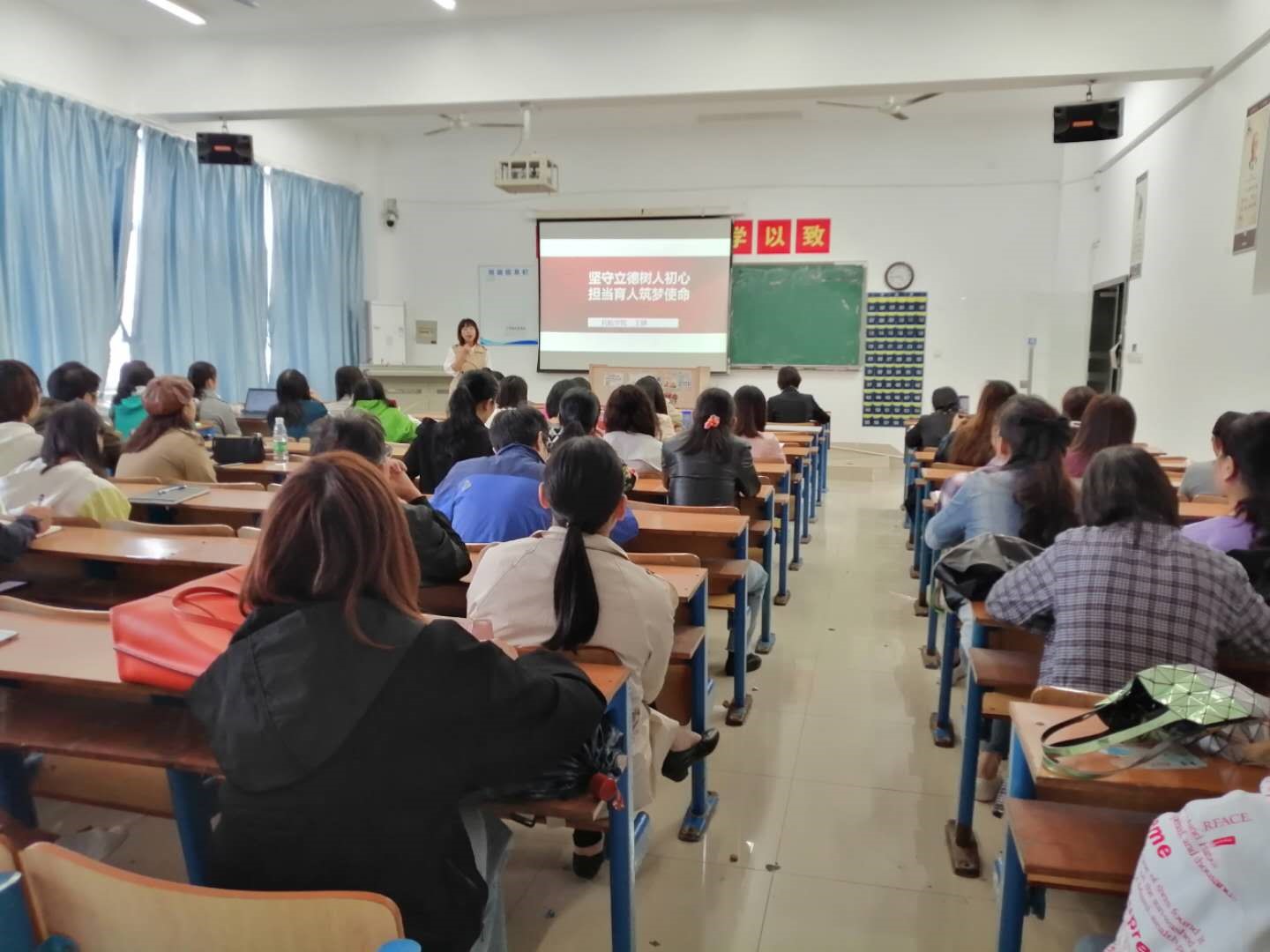 王娜老師以“堅(jiān)守立德樹人初心,擔(dān)當(dāng)育人筑夢使命”為主題,闡述了對堅(jiān)守立德樹人初心、做四有好老師、挖掘課程思政元素、實(shí)現(xiàn)潤物細(xì)無聲的理解。總結(jié)提煉出“教師的強(qiáng)大在于思想的強(qiáng)大,信念堅(jiān)定、方向明確;學(xué)高為師,德高為范,教師要積極向上,真情流露,不做作;教師要有教書育人的本領(lǐng);學(xué)生接納了老師,老師的育人才有效”四大體會。張玲老師從高校教師的成長、課程思政、課程標(biāo)準(zhǔn),教學(xué)科研四個方面進(jìn)行了精彩分享。劉英琪老師從培訓(xùn)課程簡介,啦啦操簡介,技巧啦啦操與舞蹈啦啦操區(qū)別簡介以及如何推廣啦啦操這幾個方面進(jìn)行分享交流。 最后,民航學(xué)院王建輝院長作總結(jié)發(fā)言,對王娜、張玲、劉英琪三位老師的分享給予了肯定,同時(shí)希望廣大教師把培訓(xùn)實(shí)踐成果轉(zhuǎn)化到實(shí)際的教學(xué)工作之中,不斷提高教學(xué)質(zhì)量,促進(jìn)教學(xué)內(nèi)容不斷更新,使學(xué)院的教學(xué)質(zhì)量再上新臺階。 王娜老師在進(jìn)行培訓(xùn)分享 張玲老師在進(jìn)行培訓(xùn)分享 ? 劉英琪老師在進(jìn)行培訓(xùn)分享