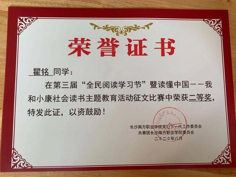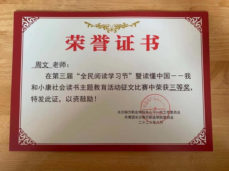 2020年8月,我院開展了第三屆“全民閱讀學(xué)習(xí)節(jié)”征文比賽。該活動是為進一步深入推進“不忘初心、牢記使命”主題教育而開展的,根據(jù)湖南高校關(guān)工委河西片高校2019年年會工作會議精神,2020年將在各高校繼續(xù)開展讀懂中國——我和小康社會的讀書主題教育活動,達到以文化人、以文動人、以文育人和以文養(yǎng)人之目的。