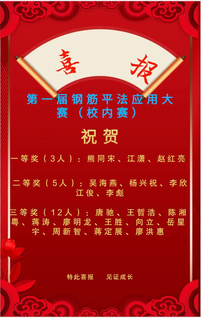 本次比賽邀請湖南一磚一瓦工程管理有限公司合作參并與提供相應的技術支持與評分,參考湖南省鋼筋平法應用比賽賽項賽程,經過三階段的激烈角逐,有19位同學脫穎而出獲得佳績。