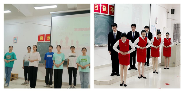 新生入學教育活動分為三個環(huán)節(jié)。首先由高鐵乘務教研室主任張玲老師帶領龔浩翔、王麗嬌、邱逸、屈林影等專業(yè)教師進行專業(yè)介紹。內容涵蓋行業(yè)發(fā)展、課程體系、師資團隊、實訓環(huán)境及學姐學長風采展示等方面,讓新生建立專業(yè)認知。其次由職業(yè)素養(yǎng)模塊周曉琴、劉英琪兩位老師指導大三學生進行便裝和職業(yè)裝對比秀及禮儀操展示,讓新生感受職業(yè)魅力。最后由彭澤紅老師組織進行定制紀念車票發(fā)放和新生學情調查問卷填寫。一張張具有專業(yè)特色的紀念高鐵車票激發(fā)了學生對專業(yè)的認可,讓新生增強行業(yè)自信。通過此次入學教育活動,高鐵客運服務專業(yè)新生在專業(yè)老師的引領下見證了中國和湖南省高鐵飛速發(fā)展的現(xiàn)狀,不僅加深了對專業(yè)的認識,同時對行業(yè)發(fā)展有了更直觀的感受,堅定了學習信念及對職業(yè)的熱愛和向往,專業(yè)信念的種子在每個學生的心中悄然生根。