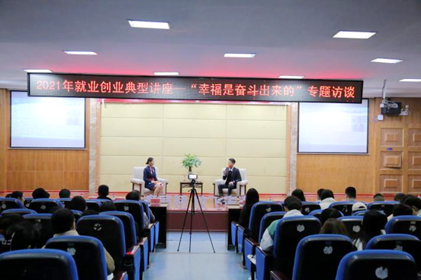 為落實(shí)“我為師生辦實(shí)事”的工作要求,增進(jìn)校友情感溝通與交流,傳承和發(fā)揚(yáng)學(xué)院“自強(qiáng)不息,學(xué)以致用”的校訓(xùn)精神,2021年12月9日,招生就業(yè)處邀請(qǐng)胡平等五名優(yōu)秀往屆畢業(yè)生回母校開(kāi)展“幸福是奮斗出來(lái)的”專題訪談,學(xué)院肖建偉副院長(zhǎng)、學(xué)生工作處劉文根處長(zhǎng)、招生就業(yè)處曹永彪處長(zhǎng)、譚澤良副處長(zhǎng)及各院系近350名師生參加了本次活動(dòng)。五位畢業(yè)生分別向?qū)W弟學(xué)妹傳遞了寶貴的學(xué)習(xí)和工作經(jīng)驗(yàn),激勵(lì)同學(xué)們要扎實(shí)奮進(jìn),為自己的理想與人生打下基礎(chǔ)。