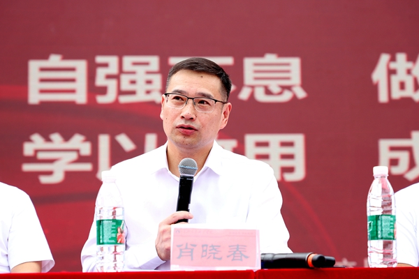 他結(jié)合學(xué)校“自強(qiáng)不息 學(xué)以致用”校訓(xùn)開(kāi)篇。引用《周易》“天行健,君子以自強(qiáng)不息”,勉勵(lì)同學(xué)們要自立自強(qiáng),奮發(fā)向上,永不松懈,自覺(jué)勇?lián)褡鍙?fù)興使命;要深刻意識(shí)和踐行“自強(qiáng)不息”的奮斗精神;要始終保持一顆拼搏之心,秉持永不服輸?shù)念B強(qiáng)毅力,積極面對(duì)、奮勇前行、腳踏實(shí)地、主動(dòng)作為;要將自身理想與時(shí)代要求結(jié)合起來(lái),用實(shí)際行動(dòng)回應(yīng)時(shí)代號(hào)召,譜寫(xiě)屬于自己的精彩篇章。要從實(shí)踐出發(fā),進(jìn)行知識(shí)能力轉(zhuǎn)化,做到活學(xué)活用、學(xué)用結(jié)合;要在理論學(xué)習(xí)和切身實(shí)踐相融合的過(guò)程中精通技能,為日后成為高素質(zhì)技術(shù)技能人才夯實(shí)基礎(chǔ)。