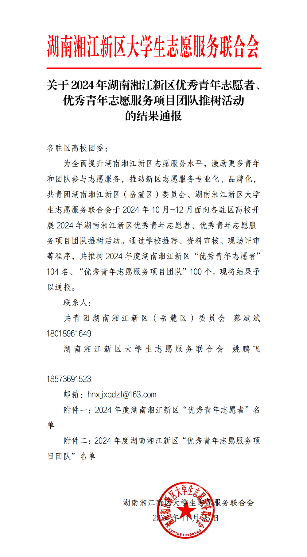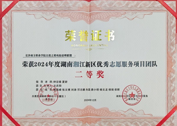 近日,共青團湖南湘江新區(qū)(岳麓區(qū))委員會、湖南湘江新區(qū)大學生志愿服務聯(lián)合會公布了2024年湖南湘江新區(qū)優(yōu)秀青年志愿者、優(yōu)秀青年志愿服務項目團隊名單。長沙南方職業(yè)學院5名學生、8個項目上榜,其中“自然之翼殘枝清理聯(lián)盟”項目榮獲二等獎。