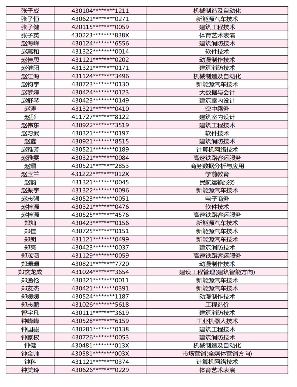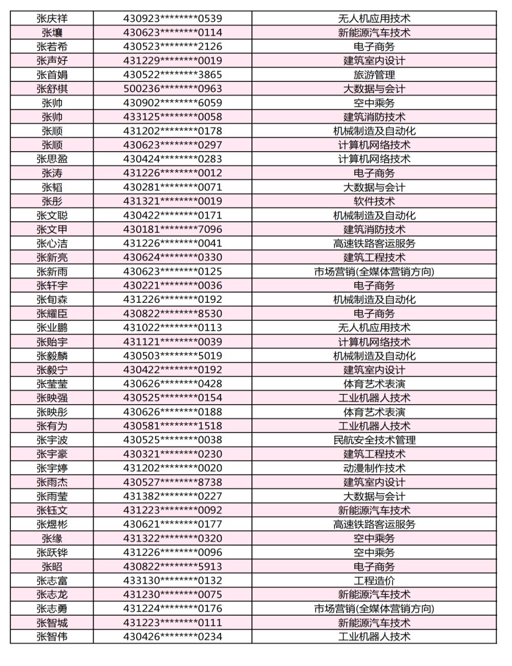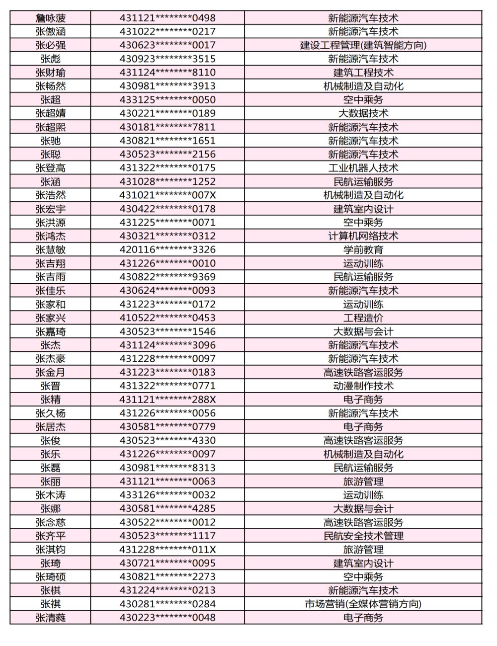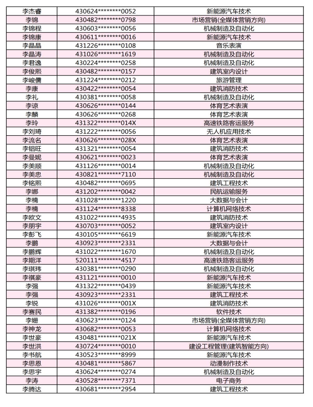附:長沙南方職業(yè)學(xué)院2024年單招錄取名單