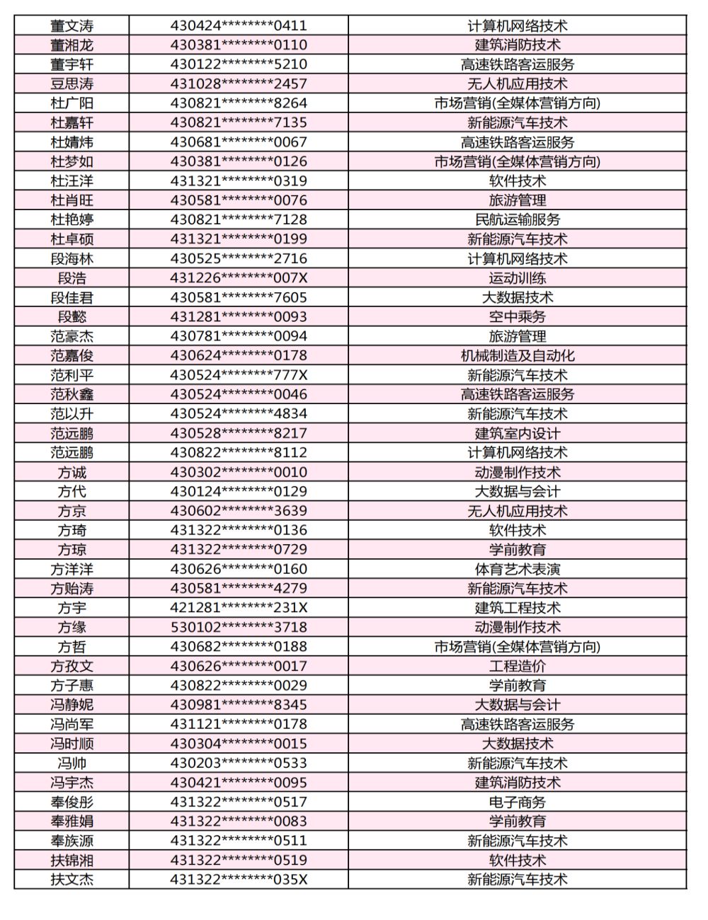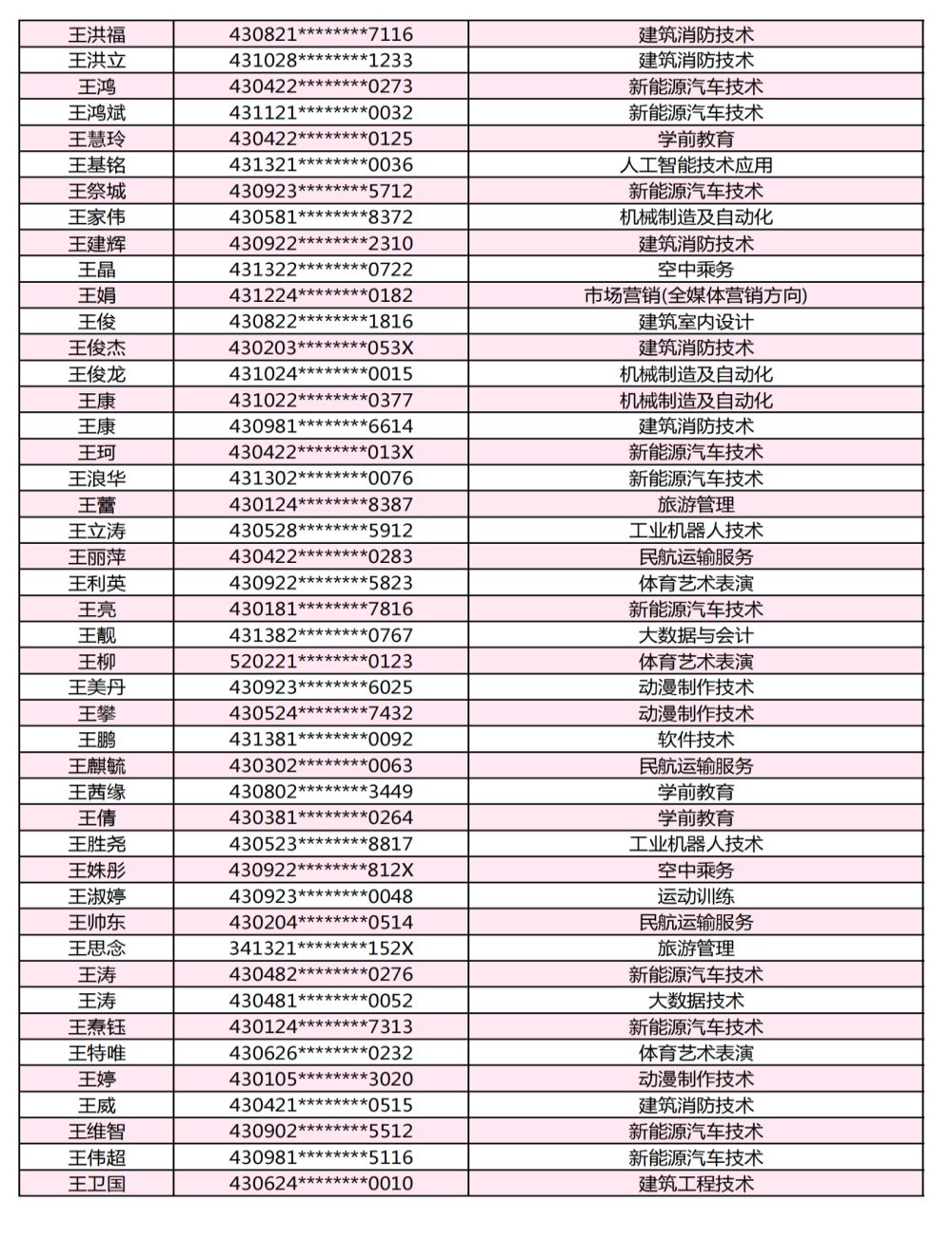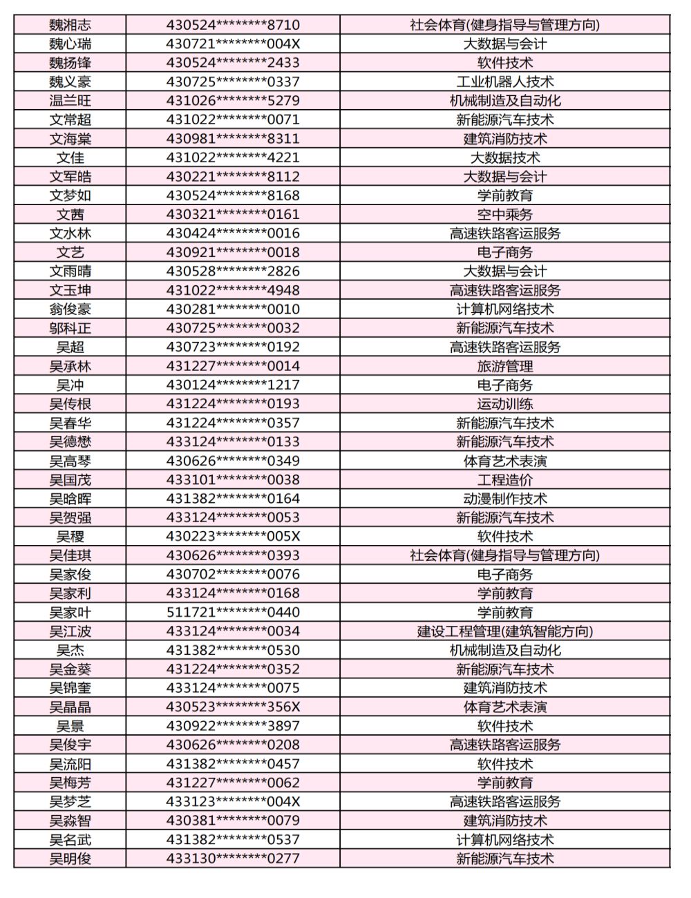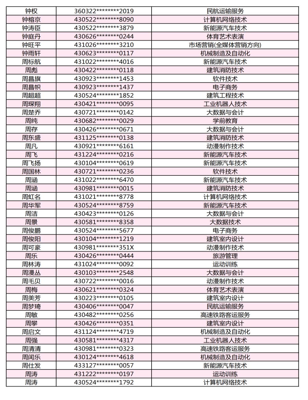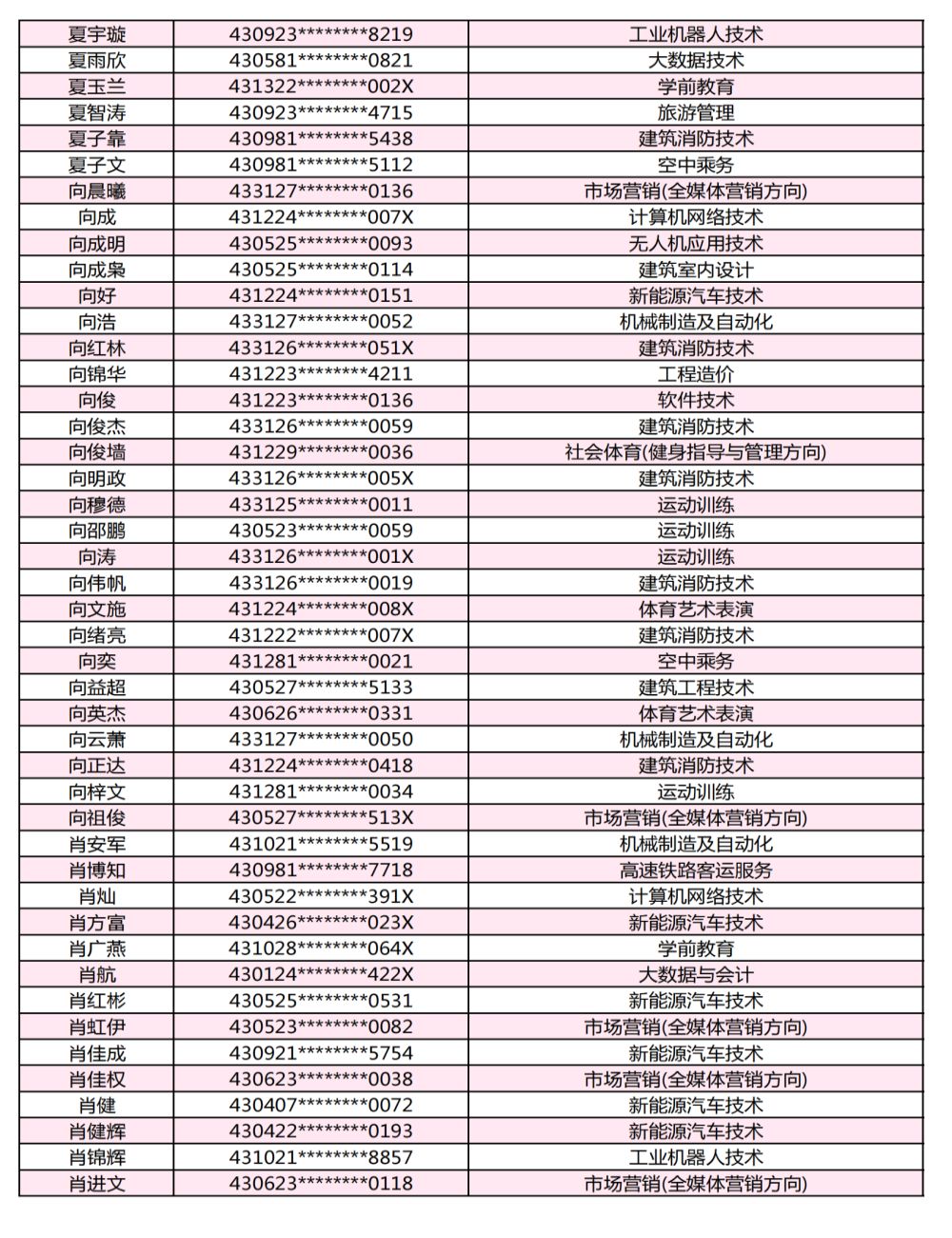 附:長沙南方職業(yè)學(xué)院2024年單招錄取名單