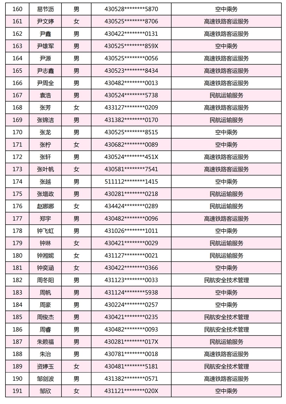 根據(jù)長沙南方職業(yè)學(xué)院2024年航空類提前批專業(yè)面試安排,截至7月1日18:00,航空提前批考生三批次面試合格入圍名單191人。具體名單公示如下,公示時間:2024年7月2日-7月8日。若對公示名單有異議,請?jiān)诠酒趦?nèi)以書面形式向?qū)W校招生就業(yè)處反映。