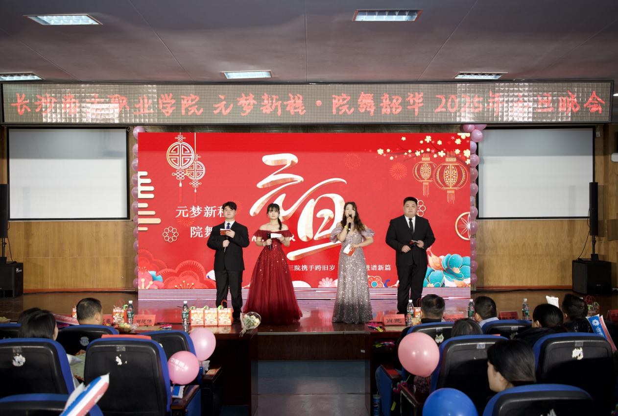 歲末之際,長沙南方職業(yè)學院(下稱學校)校本部揚帆樓學術(shù)報告廳內(nèi)華燈璀璨、歡聲雷動,人工智能學院(下稱人工學院)、數(shù)字商務學院(下稱數(shù)商學院)、建筑工程與設計學院(下稱建筑學院)攜手共創(chuàng)的元旦晚會——“元夢新程,院舞韶華”震撼上演,副標題“三院攜手跨舊歲·齊心奮進譜新篇”醒目高懸,宛如一面奮進的旗幟,引領三院師生揮別舊年、邁向新程,在校園中掀起一場青春與才藝碰撞的狂歡熱潮。學校副校長肖建偉、學生工作處處長鐘迎春、招生就業(yè)處處長張偉、人工學院院長李兵、數(shù)商學院院長何廣軍、建筑院長項林以及各二級學院副院長、團總支書記出席晚會。
