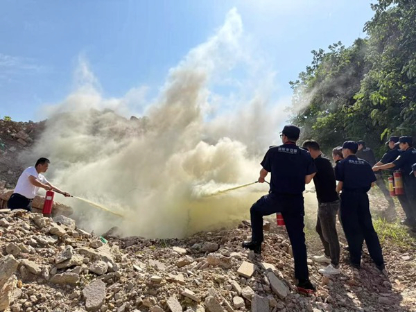 講座后,保衛(wèi)處組織教職工模擬火源場景進(jìn)行消防滅火實(shí)踐演練。參演教職工嚴(yán)格按照操作規(guī)程,提起滅火器、拔掉保險(xiǎn)銷,對(duì)準(zhǔn)火焰根部左右噴射,迅速撲滅“明火”,整個(gè)過程緊張有序,達(dá)到預(yù)期演練效果。