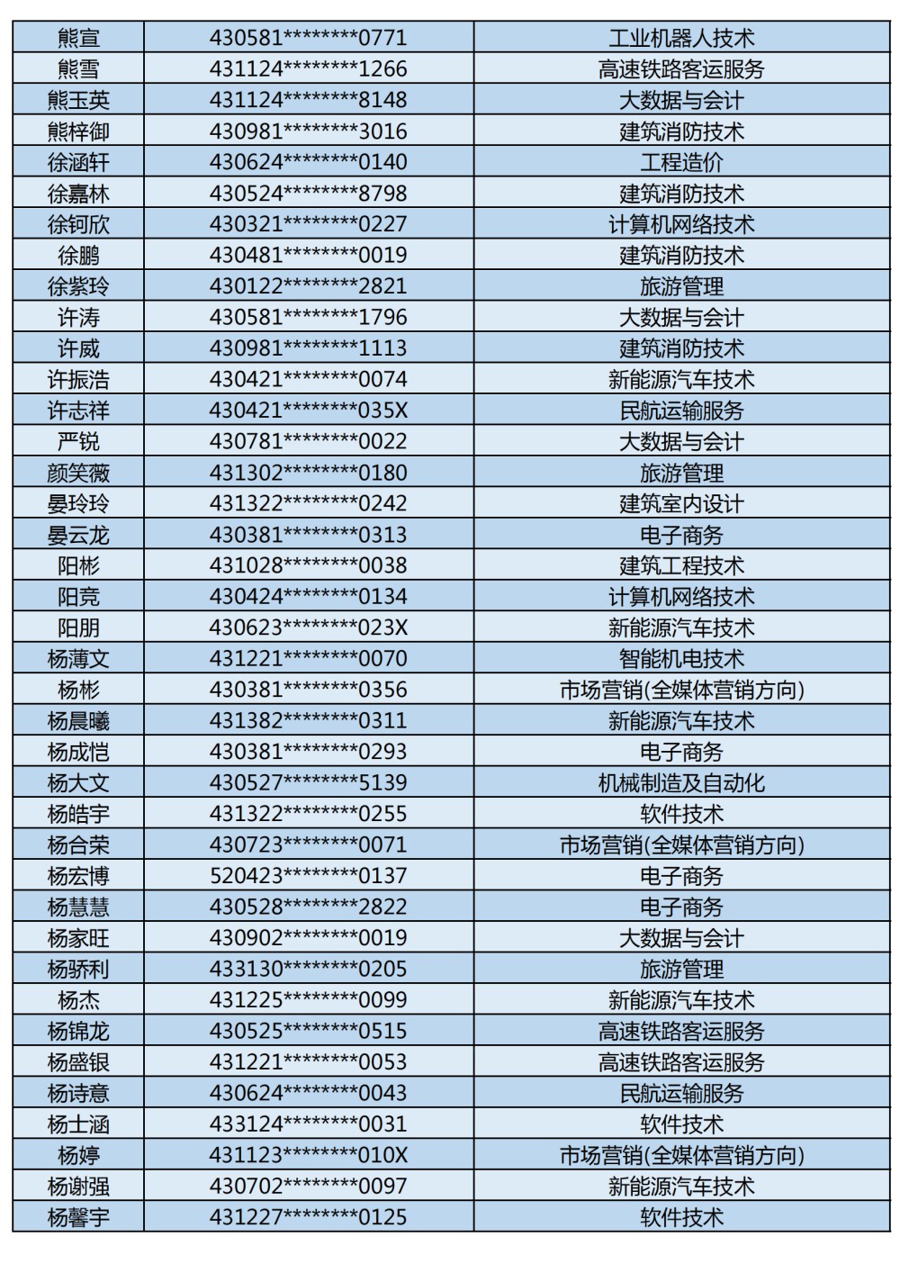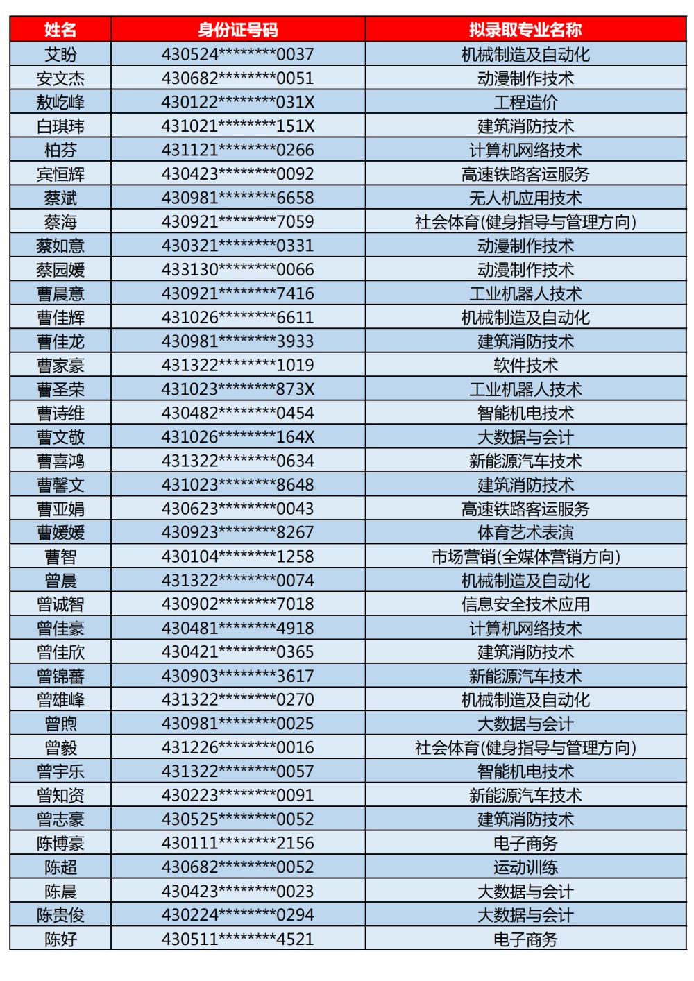 長沙南方職業(yè)學(xué)院2025年單獨(dú)招生考試第二志愿錄取名單公示