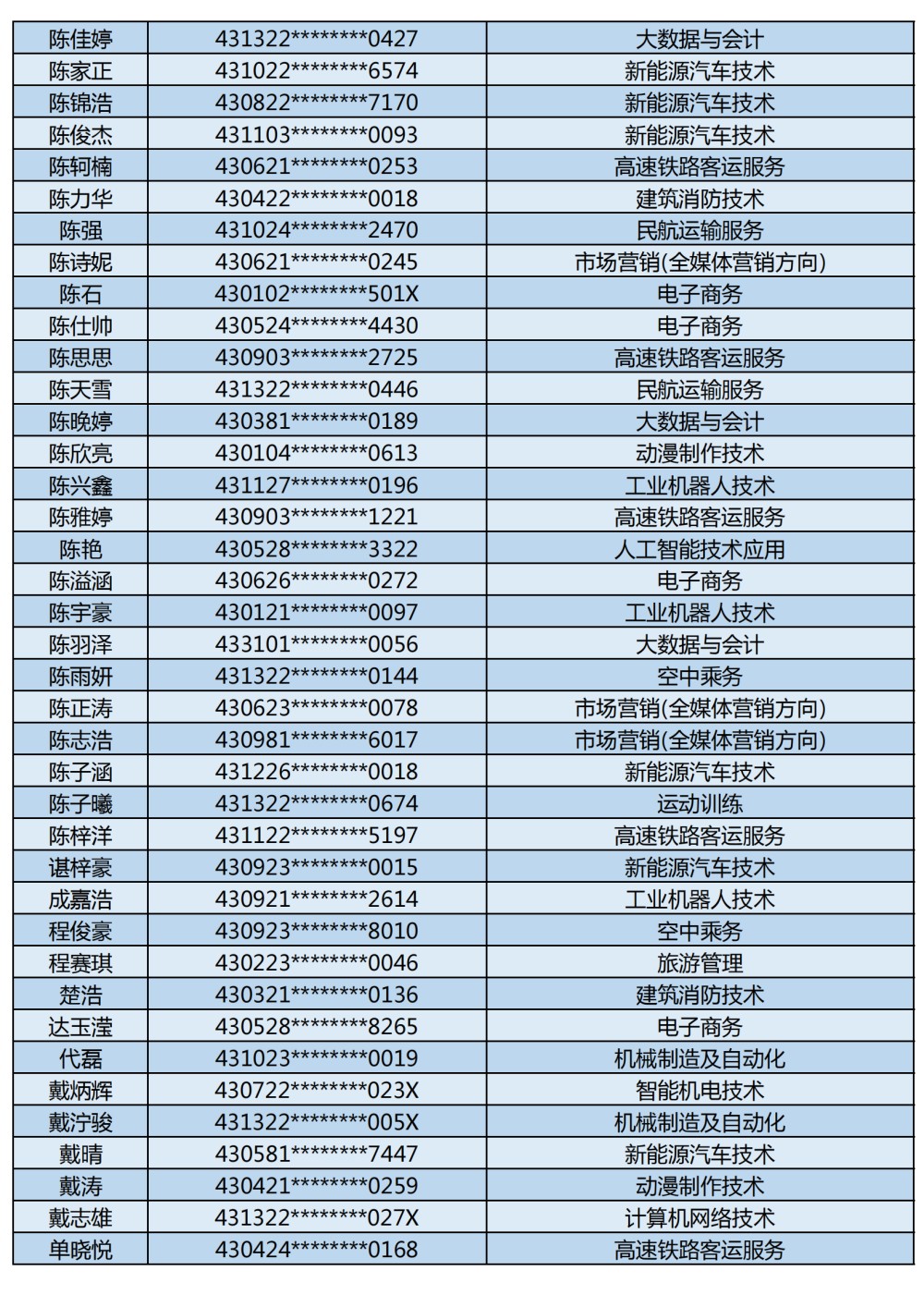 附:長沙南方職業(yè)學(xué)院2025年單招二志愿錄取名單
